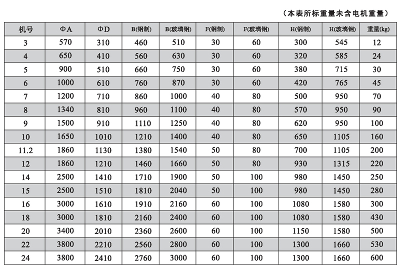 DWT-I型(軸流式)續(xù)表