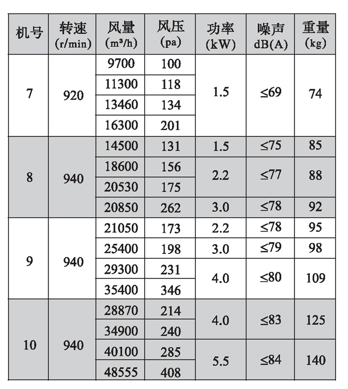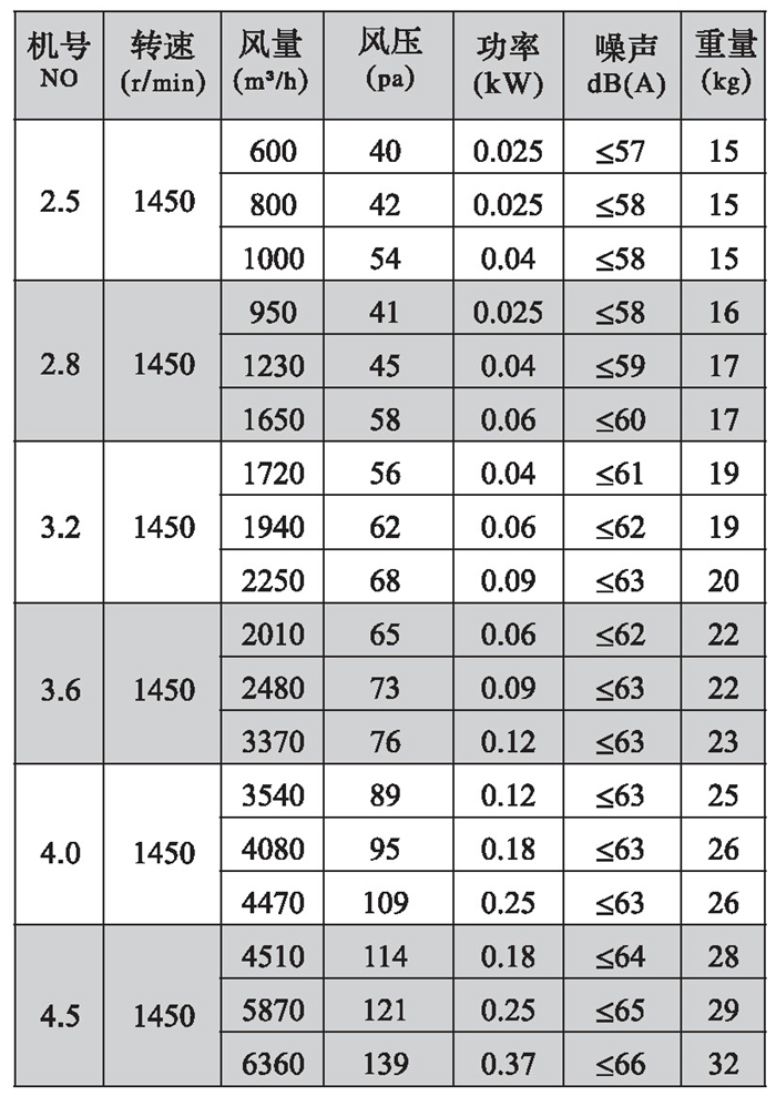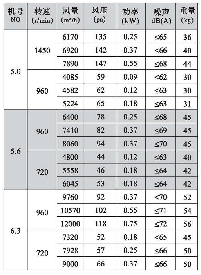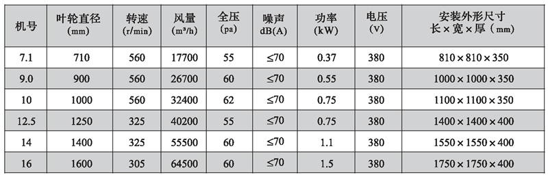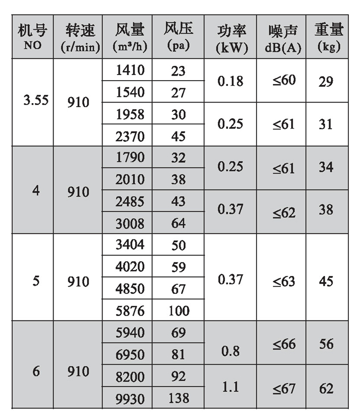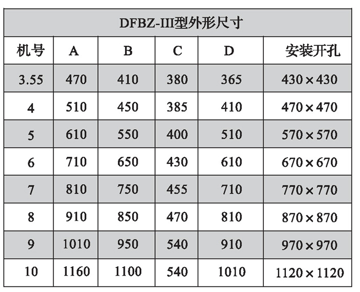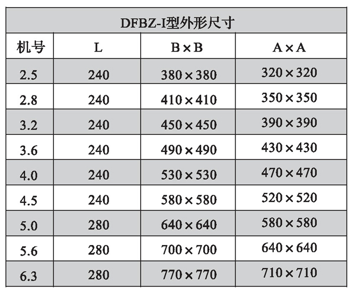 三、DFBZ型風機外形尺寸表(單位: mm)
